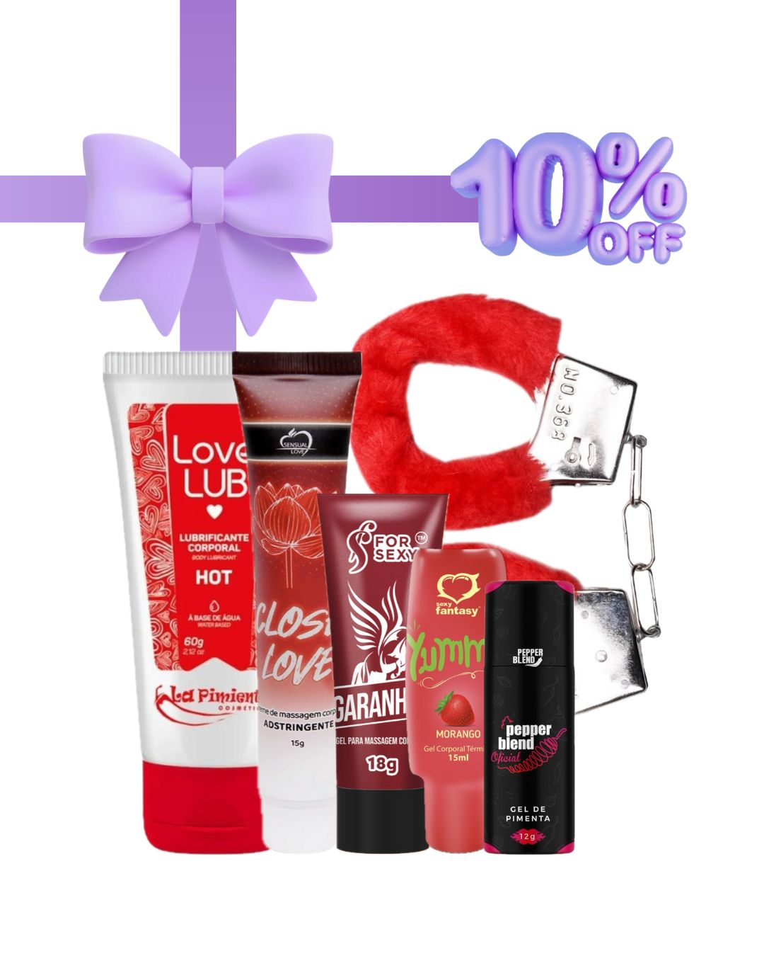 - Algemas com pelúcia na cor vermelha, acompanha as chaves;